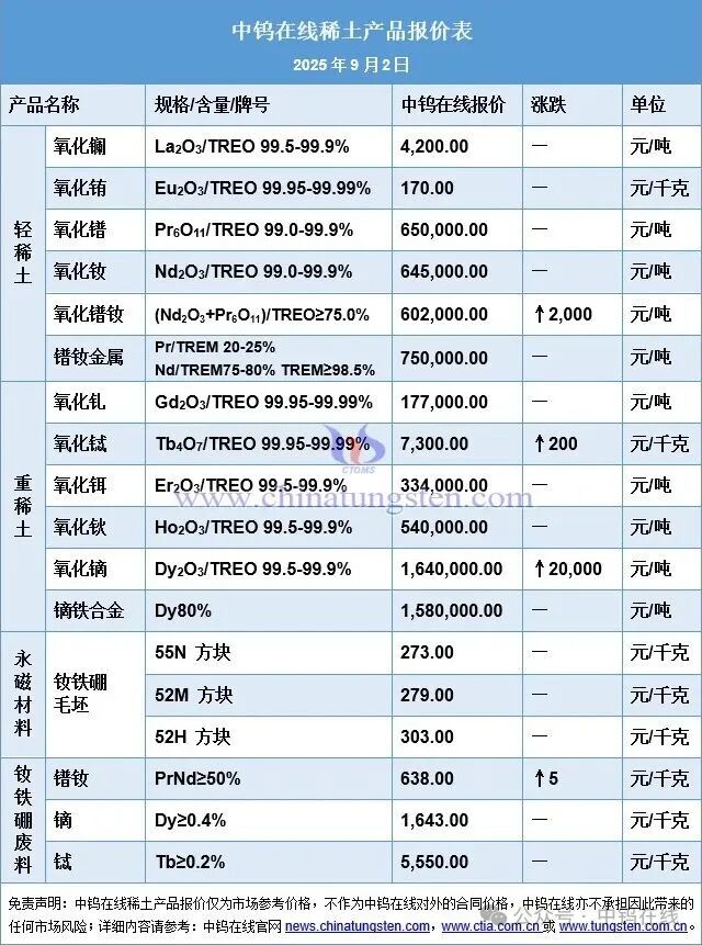 2025年9月2日稀土市场行情