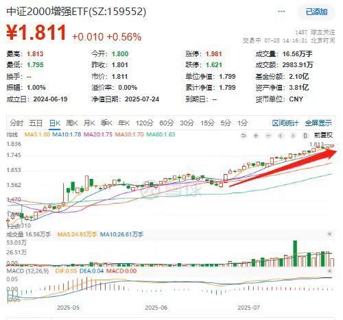 7月25日,中小盘再度占优。截至14时15分,年内涨幅超38%的中证2000增强ETF(159552)盘中创年内第31次新高丰云股票,引领全市场宽基ETF;交投持续升温,换手率达7.86%,基金年内规模增长2263.84%,创历史新高。
